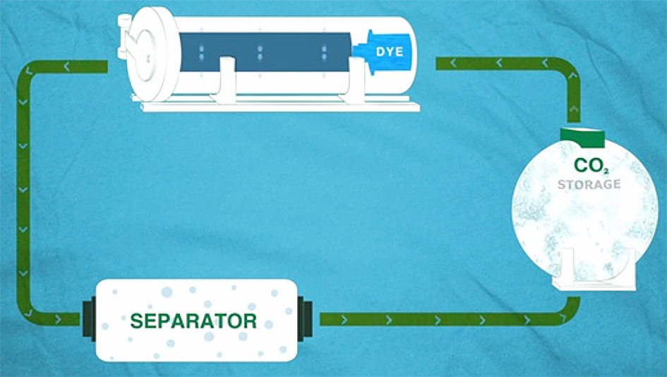 Esta tecnología se basa en máquinas cerradas tipo Bean, donde el fluido de dióxido de carbono es utilizado como medio transporte del colorante a la fibra y esto se lleva a cabo elevando la temperatura a 31 grados y a una presión de 74 bares. En ese momento, el CO2 llega a un estado llamado supercrítico, en que tiene propiedades de líquido y de gas, permitiendo disolver los colorantes.
